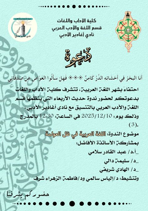 The Literary Club “Agadir” of the Department of Arabic Language and Literature organized a cultural event to commemorate the outbreak of the Glorious Algerian Revolution of November 1st.This initiative aimed to honor the memory of the martyrs and reaffirm the values of revolution and freedom.