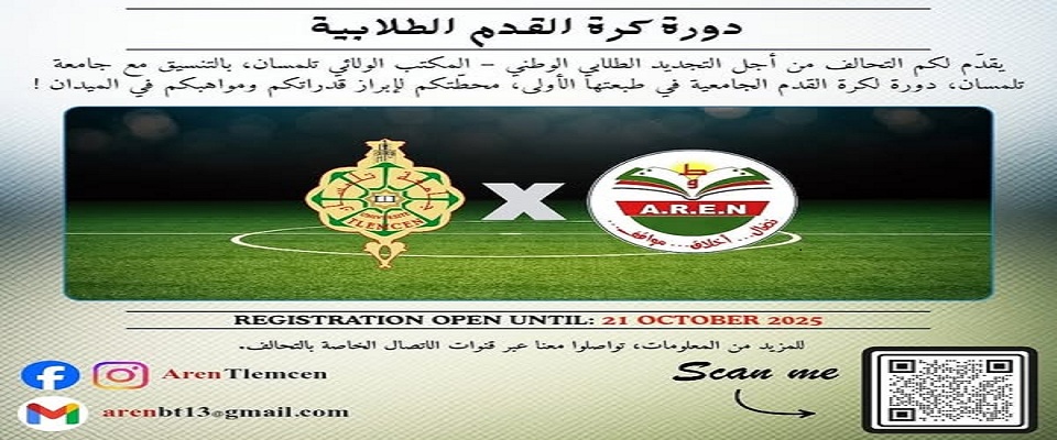إعلان : دورة كرة القدم ما بين الكليات بجامعة تلمسان