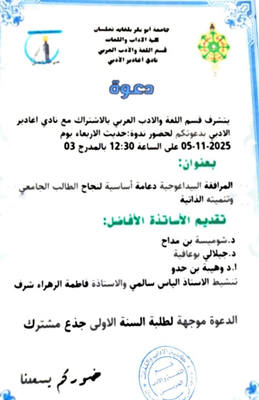 La bibliothèque de la Faculté des Lettres et des Langues a également contribué à la réussite de l’événement ; ses responsables et son personnel ont été chaleureusement remerciés pour leur soutien et leur collaboration fructueuse.